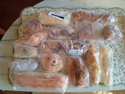 本日はるばる九州から美味しいパンが我が家にやってきました。開けたら好みのパンが沢山入っており、家族で大喜びです。早速朝朝食べるパンを各自選んだので、リベイクして美味しくいただきます。ありがとうございました。
