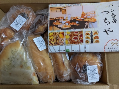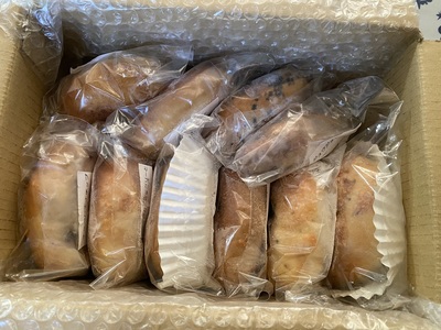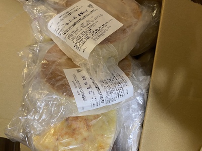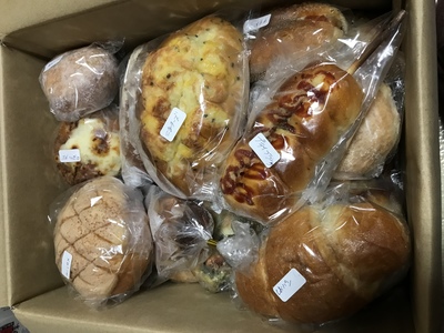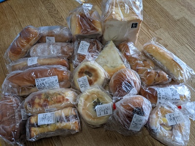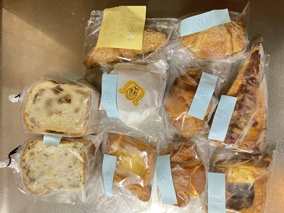 先ほど受け取りました。20個ほどの、食事パン 惣菜パン 菓子パンがバランスよく入っていました!さっそく 塩バターフランスクロワッサンを。バターの風味とサクサク感がたまりません!あっという間でした~