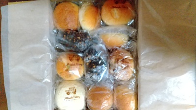 沢山のパンが 届きました。パンに番号が貼ってあり 別添えの用紙に番号ごとに 商品名と材料が 書いてあるので解りやすいですね。好きな あんパン あんばたー が入っていて嬉しいです。肉みそレンコン 黒ごまごぼうも気になります。少しずつ味わいながら頂きます。有り難うございました。