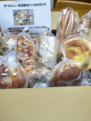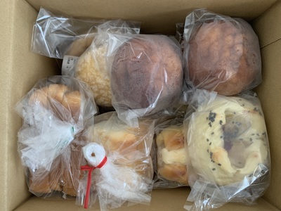 他に食パン2種、カンパーニュ、いちぢくくるみ、チェダーチーズ、いよかん、が入っていました。カンパーニュは底が焦げて真っ黒の部分が有り、堅かったのが少々残念です。