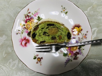 生地の緑も鮮やか、ナッツもフルーツもぎっしりで、食べる前も食べた後もずっと笑顔でいられました。