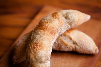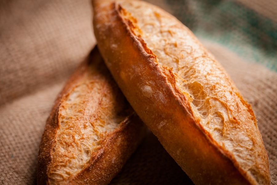 自然解凍後、あらかじめ余熱しておいたオーブンやトースターで温めてお召し上がりください。 パン全体に霧吹きなどで軽く水をかけてからトースターで3分~4分ほど加熱するとさっくり、もっちり出来たてのようになり美味しく召し上がれます。