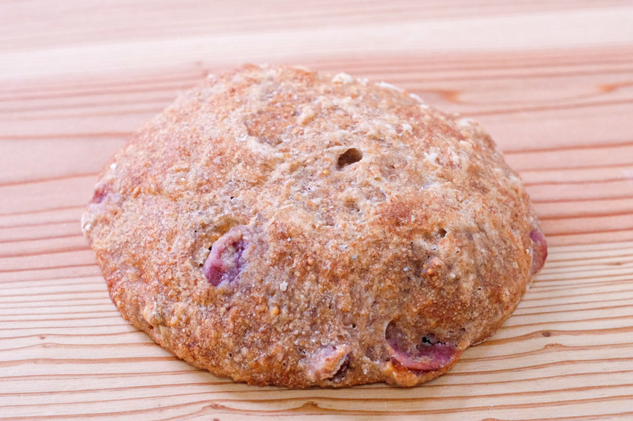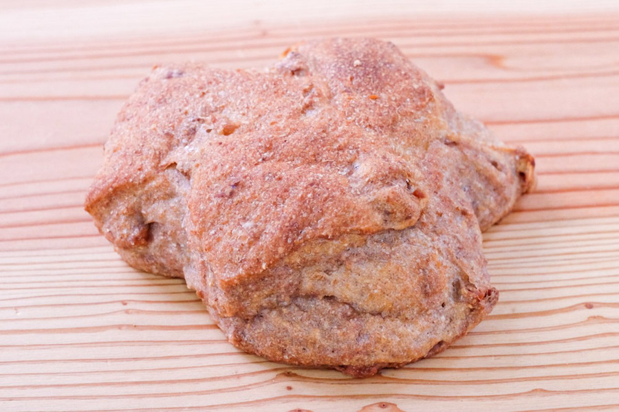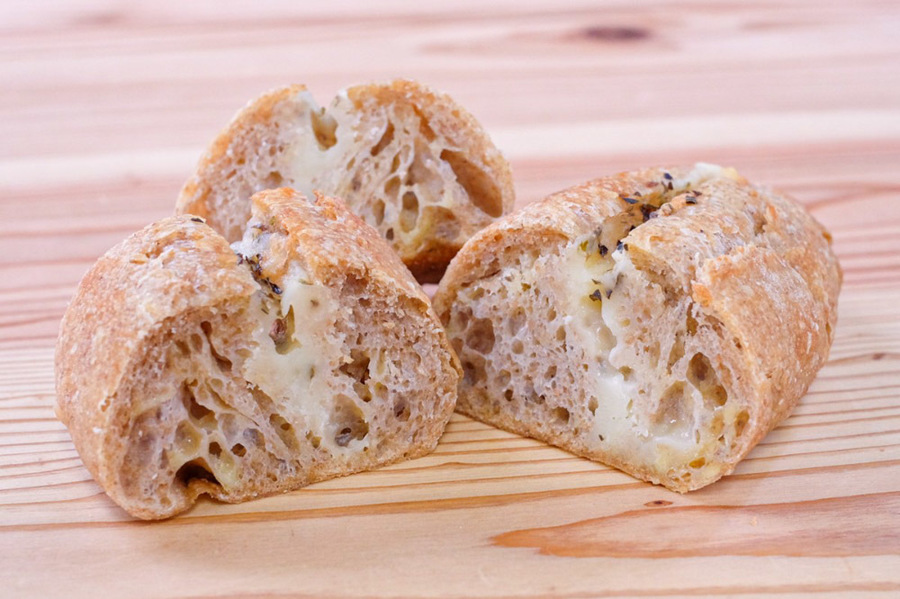 自然解凍後、あらかじめ余熱しておいたオーブンやトースターで温めてお召し上がりください。 パン全体に霧吹きなどで軽く水をかけてからトースターで3分~4分ほど加熱するとさっくり、もっちり出来たてのようになり美味しく召し上がれます。
