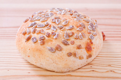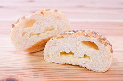 自然解凍後、あらかじめ余熱しておいたオーブンやトースターで温めてお召し上がりください。 パン全体に霧吹きなどで軽く水をかけてからトースターで3分~4分ほど加熱するとさっくり、もっちり出来たてのようになり美味しく召し上がれます。 厚みのあるパンは表面がこげやすいのでアルミホイルをかけて加熱してください。