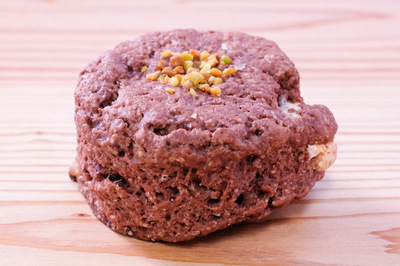 自然解凍後、あらかじめ余熱しておいたオーブンやトースターで温めてお召し上がりください。 パン全体に霧吹きなどで軽く水をかけてからトースターで3分~4分ほど加熱するとさっくり、もっちり出来たてのようになり美味しく召し上がれます。