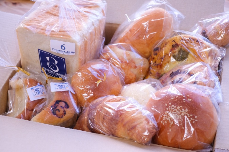 80サイズの箱に4,000円相当のパンをお入れいたします。