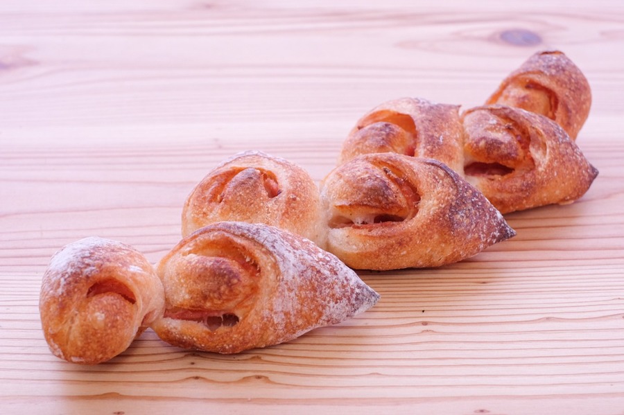自然解凍後、あらかじめ余熱しておいたオーブンやトースターで温めてお召し上がりください。 パン全体に霧吹きなどで軽く水をかけてからトースターで3分~4分ほど加熱するとさっくり、もっちり出来たてのようになり美味しく召し上がれます。