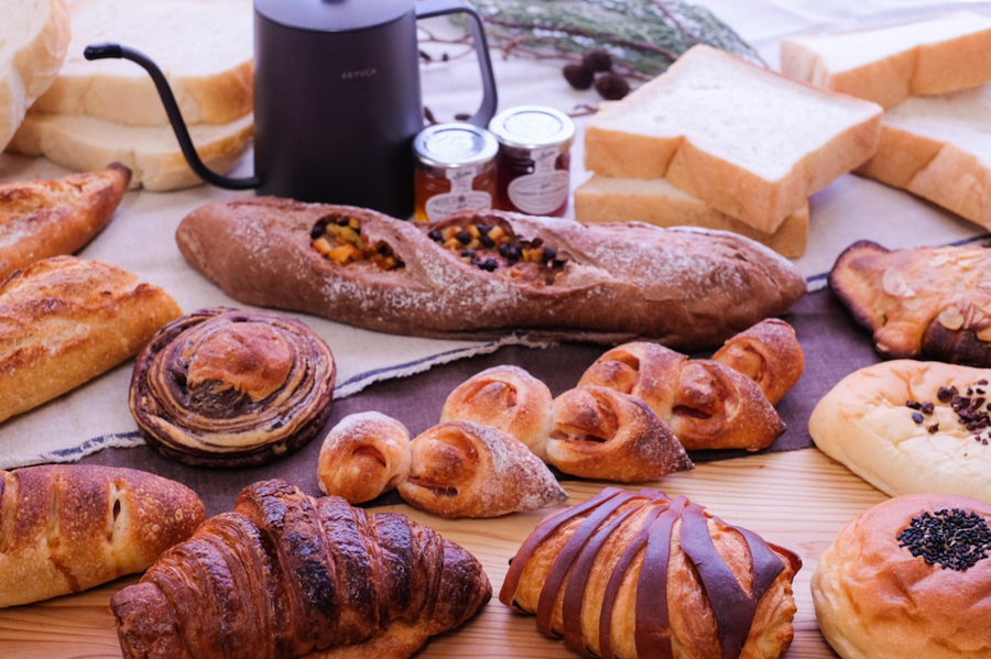 小麦粉、全粒粉、餅粉、バター、グラニュー糖、脱脂粉乳、卵、塩など ※アレルギーがご心配な方はご遠慮下さい。 ※各パンに原材料表示シールを貼付します。