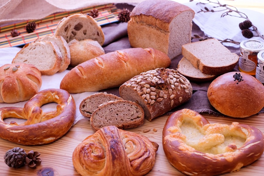 小麦粉・ライ麦粉・砂糖・塩・イースト・モルトパウダー・バター・マーガリン・はちみつ・卵・牛乳・ヒマワリの種・チーズ・明太子・シナモン・かぼちゃ・クリームチーズ・くるみ ほか ※アレルギーがご心配な方はご遠慮下さい。 ※各パンに原材料表示シールを貼付します。