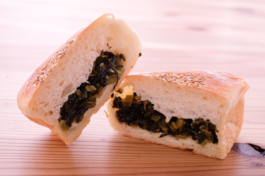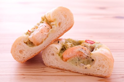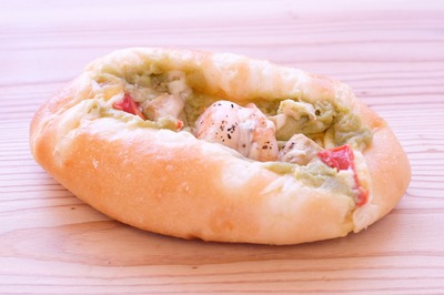 米粉・砂糖・塩・卵・バター・太白ゴマ油・グルテン・スキムミルク・クリームチーズ・鶏肉・野沢菜・レーズン・エビ・アボカド ほか 一部添加物を含んだ食材を使っています。 ※アレルギーがご心配な方はご遠慮下さい。 ※各パンに原材料表示シールを貼付します。
