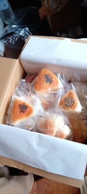 早速宝箱か届きました。新潟という遠い所からありがとうございます😊おにぎりのかたちのパンが可愛いです。楽しみに頂きます。