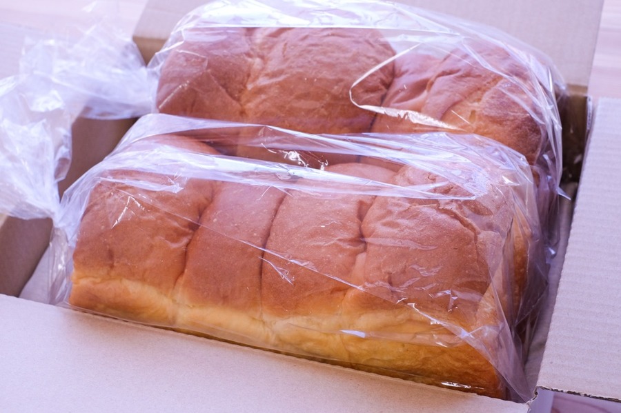 80サイズの箱にブリオッシュ2斤を2本お詰めします。 冷凍のため、1本を2つにカットしてお送りします。 ※ご希望がございましたらスライスも可能です.