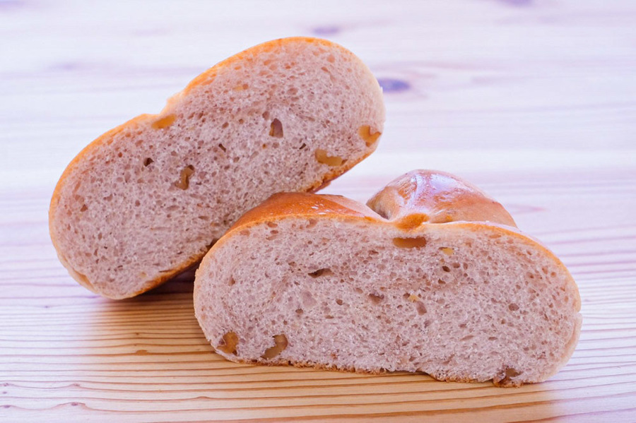 自然解凍後、あらかじめ余熱しておいたオーブンやトースターで温めてお召し上がりください。 パン全体に霧吹きなどで軽く水をかけてからトースターで3分~4分ほど加熱するとさっくり、もっちり出来たてのようになり美味しく召し上がれます。