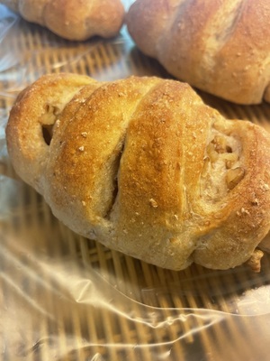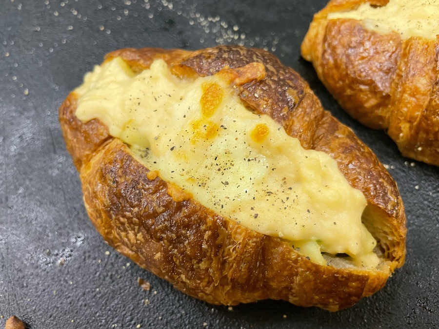 自然解凍後、あらかじめ余熱しておいたオーブンやトースターで温めてお召し上がりください。 パン全体に霧吹きなどで軽く水をかけてからトースターで3分~4分ほど加熱するとさっくり、もっちり出来たてのようになり美味しく召し上がれます。