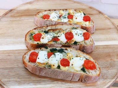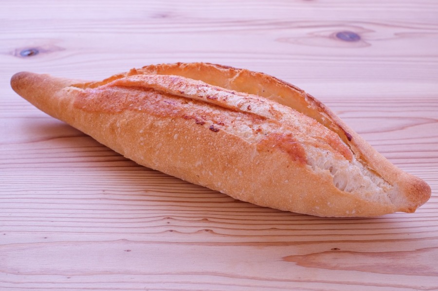 自然解凍後、あらかじめ余熱しておいたオーブンやトースターで温めてお召し上がりください。 パン全体に霧吹きなどで軽く水をかけてからトースターで3分~4分ほど加熱するとさっくり、もっちり出来たてのようになり美味しく召し上がれます。 厚みのあるパンは表面がこげやすいのでアルミホイルをかけて加熱してください。