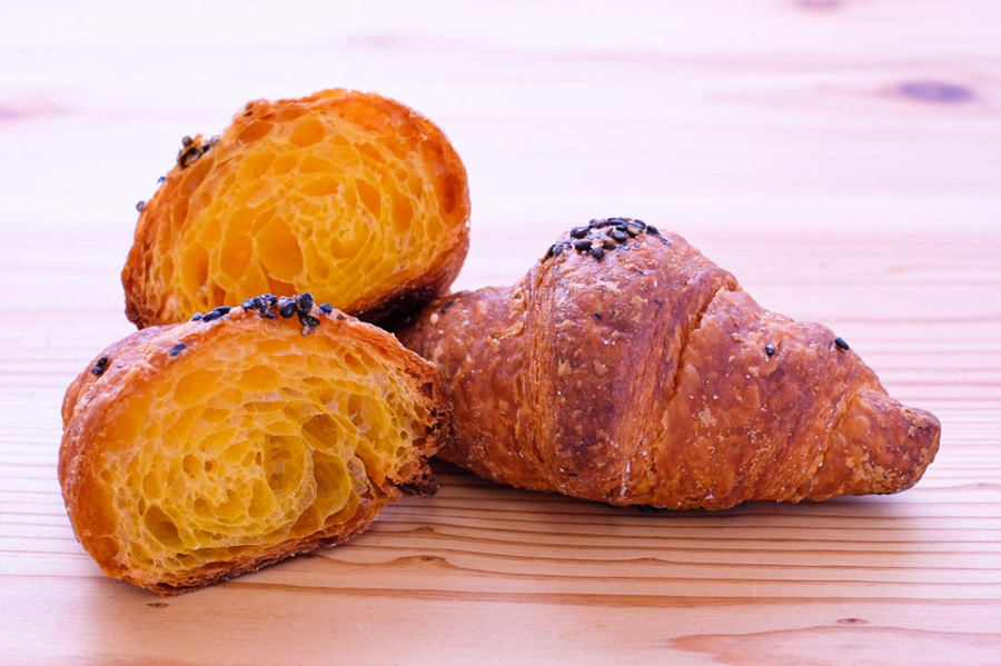 自然解凍後、あらかじめ余熱しておいたオーブンやトースターで温めてお召し上がりください。 パン全体に霧吹きなどで軽く水をかけてからトースターで3分~4分ほど加熱するとさっくり、もっちり出来たてのようになり美味しく召し上がれます。 厚みのあるパンは表面がこげやすいのでアルミホイルをかけて加熱してください。