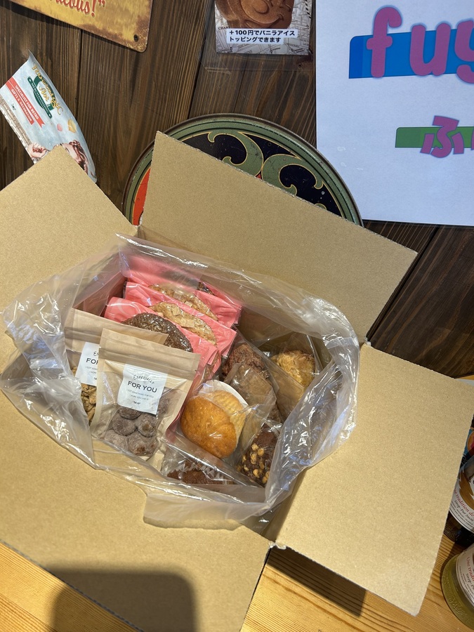 60サイズの箱に合計3,500円以上のマフィンやスコーンを中心に、その他菓子やクッキーなど入ります。 詳しくは、上記商品説明をご確認ください。