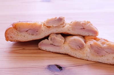 自然解凍後、あらかじめ余熱しておいたオーブンやトースターで温めてお召し上がりください。 パン全体に霧吹きなどで軽く水をかけてからトースターで3分~4分ほど加熱するとさっくり、もっちり出来たてのようになり美味しく召し上がれます。