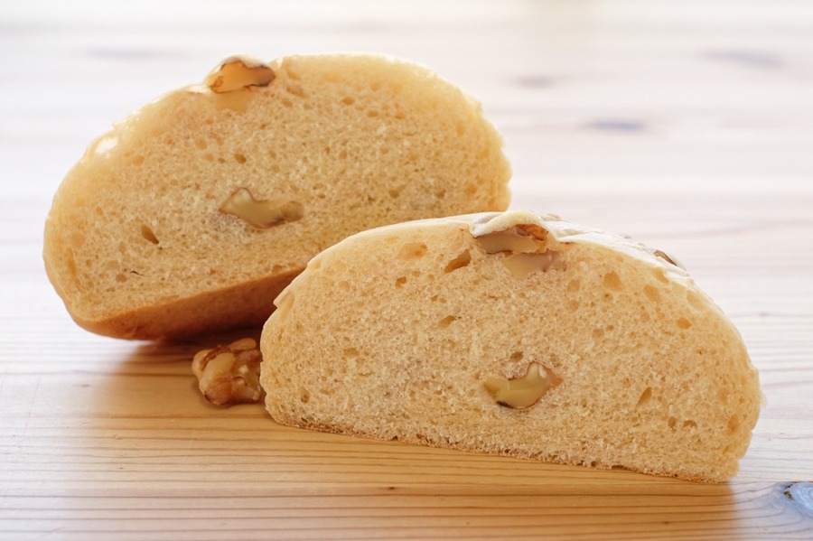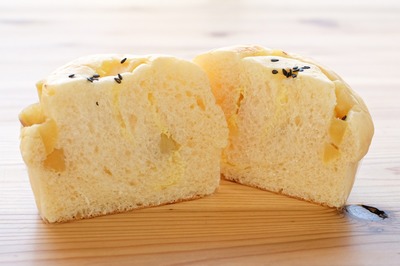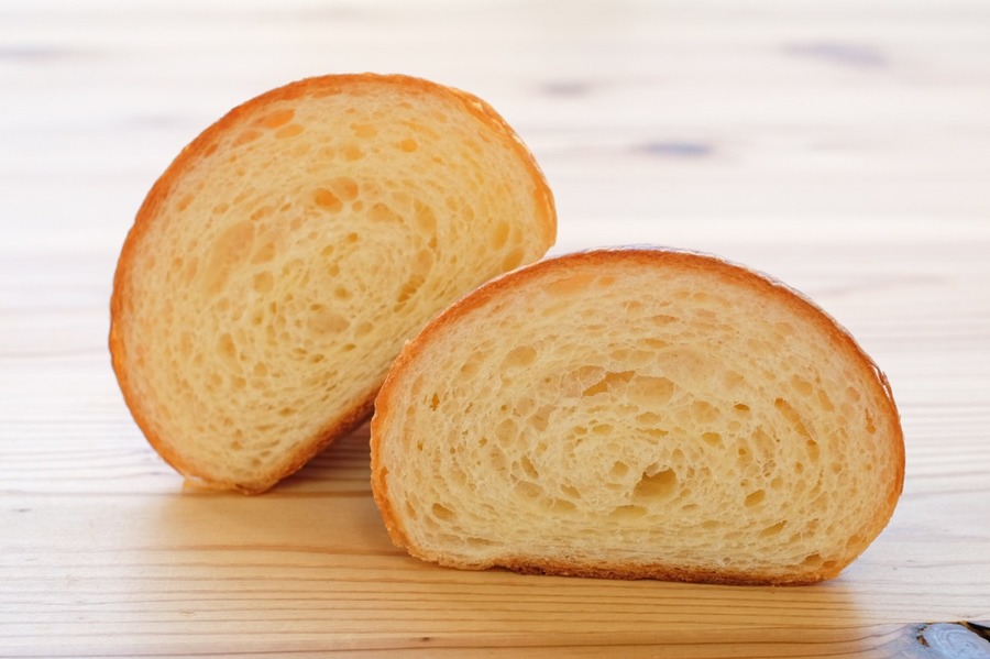 自然解凍後、あらかじめ余熱しておいたオーブンやトースターで温めてお召し上がりください。 パン全体に霧吹きなどで軽く水をかけてからトースターで3分~4分ほど加熱するとさっくり、もっちり出来たてのようになり美味しく召し上がれます。 厚みのあるパンは表面がこげやすいのでアルミホイルをかけて加熱してください。