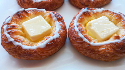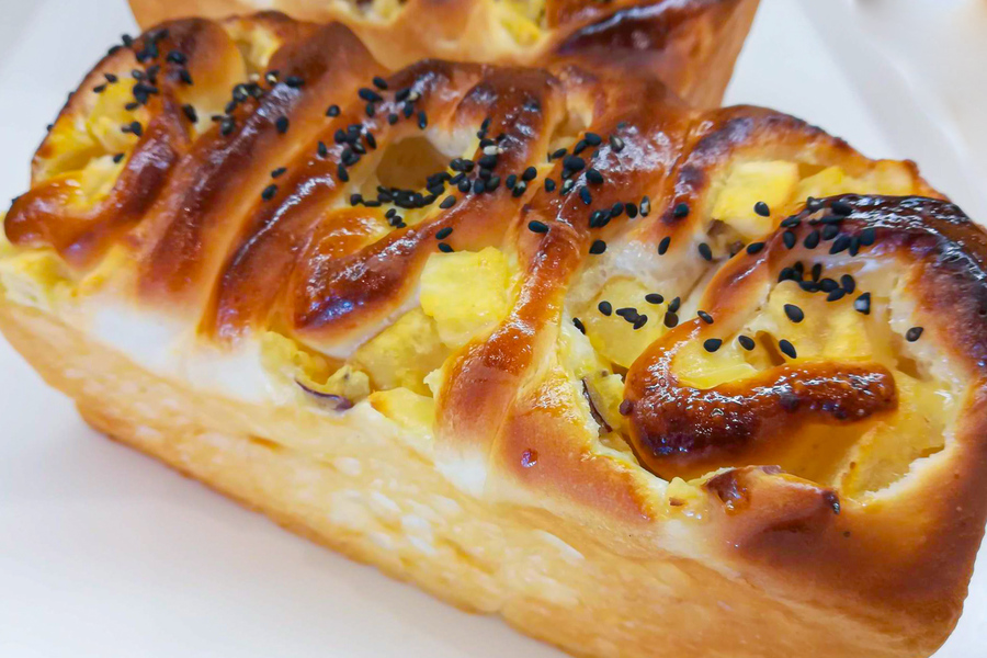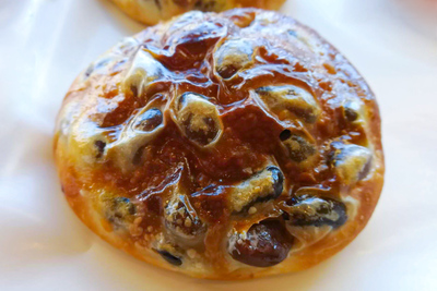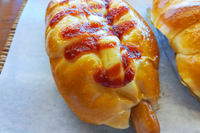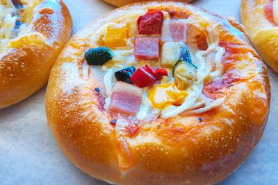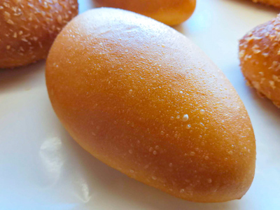 自然解凍後、あらかじめ余熱しておいたオーブンやトースターで温めてお召し上がりください。 パン全体に霧吹きなどで軽く水をかけてからトースターで3分~4分ほど加熱するとさっくり、もっちり出来たてのようになり美味しく召し上がれます。 厚みのあるパンは表面がこげやすいのでアルミホイルをかけて加熱してください。