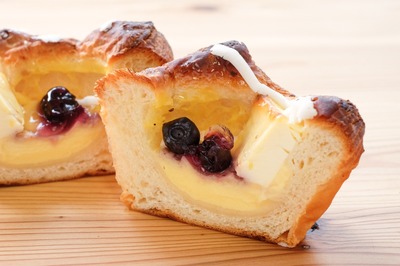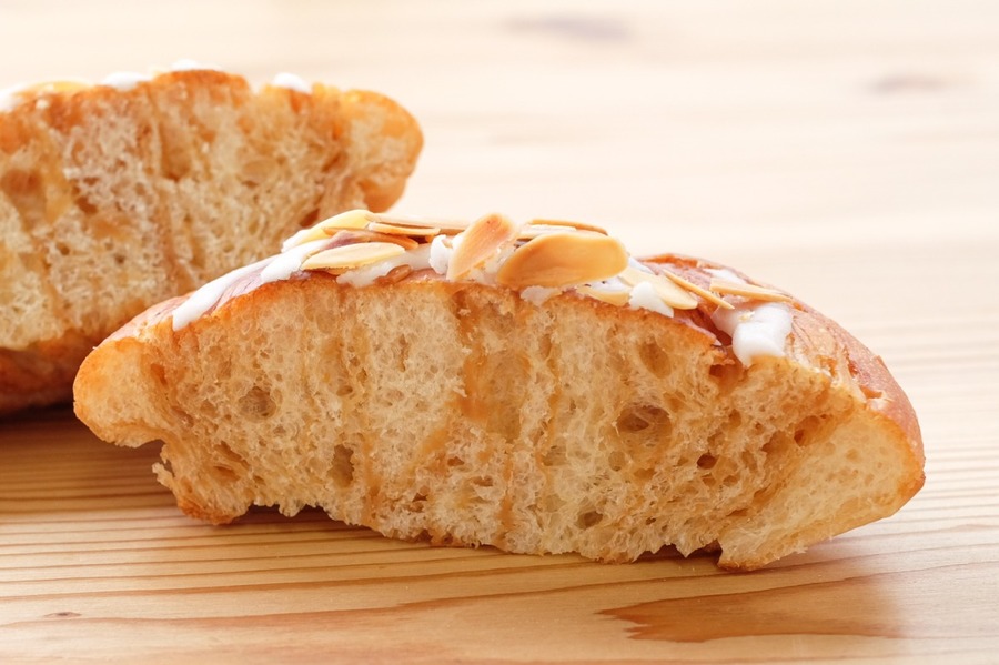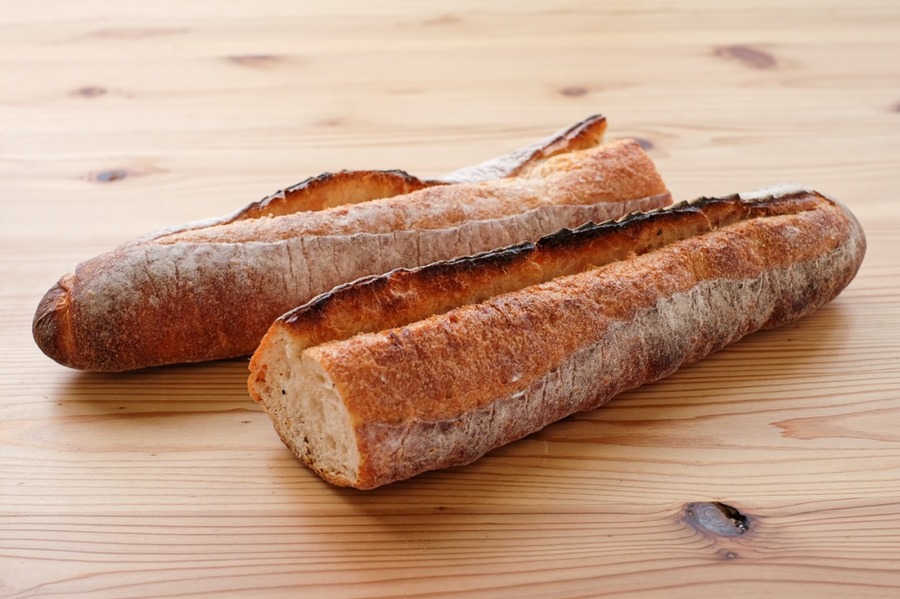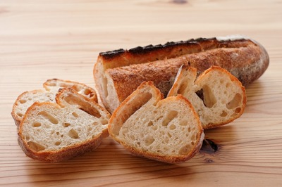 自然解凍後、あらかじめ余熱しておいたオーブンやトースターで温めてお召し上がりください。 パン全体に霧吹きなどで軽く水をかけてからトースターで3分~4分ほど加熱するとさっくり、もっちり出来たてのようになり美味しく召し上がれます。 厚みのあるパンは表面がこげやすいのでアルミホイルをかけて加熱してください。
