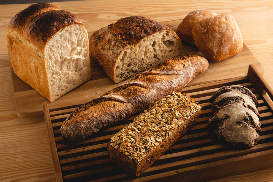 南青山の店舗でも人気の6品をお入れします。 ●サワードウ(ハーフ) ●クラシック ●自家製自然酵母食パン「バルティザン」(1斤) ●グレイン・チョコレート&ウォルナッツ・サワードウチャバタ