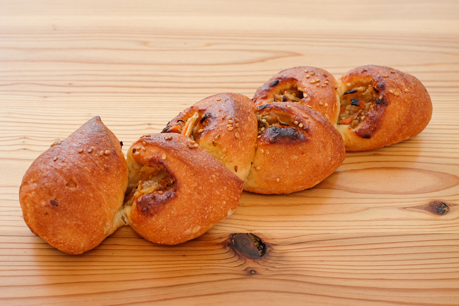 小麦粉、発酵バター、砂糖、塩、植物油脂、にんにく、ごぼう、マヨネーズ、ショートニング ※アレルギーがご心配な方はご遠慮下さい。 ※各パンに原材料表示シールを貼付します。