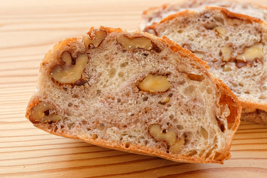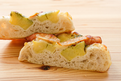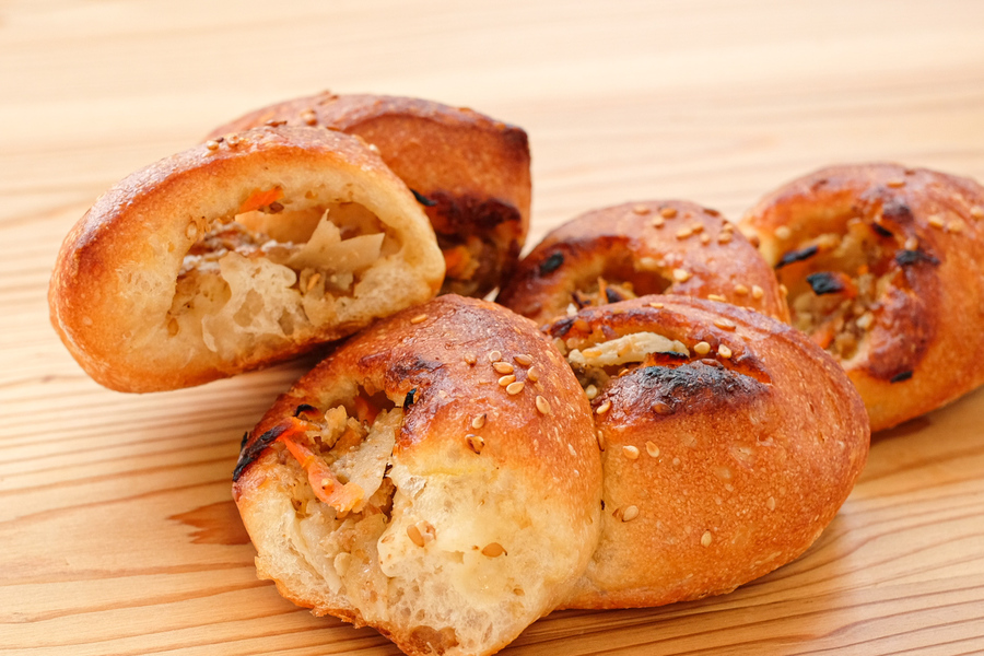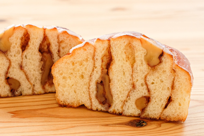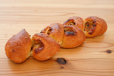 自然解凍後、あらかじめ余熱しておいたオーブンやトースターで温めてお召し上がりください。 パン全体に霧吹きなどで軽く水をかけてからトースターで3分~4分ほど加熱するとさっくり、もっちり出来たてのようになり美味しく召し上がれます。 厚みのあるパンは表面がこげやすいのでアルミホイルをかけて加熱してください。