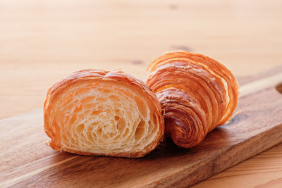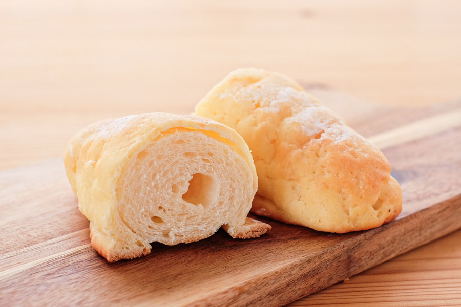 自然解凍後、あらかじめ余熱しておいたオーブンやトースターで温めてお召し上がりください。 パン全体に霧吹きなどで軽く水をかけてからトースターで3分~4分ほど加熱するとさっくり、もっちり出来たてのようになり美味しく召し上がれます。 厚みのあるパンは表面がこげやすいのでアルミホイルをかけて加熱してください。