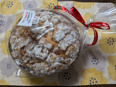 ベネチアーナが届きパネトーネの大好きな友達は大きさにビックリ。とても美味しそうで日増しに美味しくなるのを待ちきれないと喜んでもらえました。
