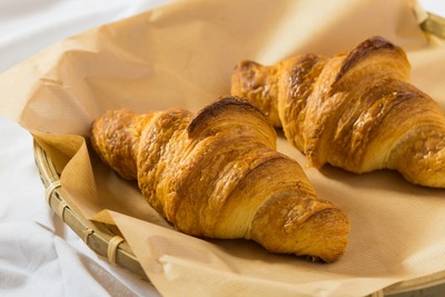 自然解凍後、あらかじめ予熱しておいたオーブンやトースターで温めてお召し上がりください。(※気温が上がってくる夏場は一晩冷蔵庫で解凍してください) パン全体に霧吹きなどで軽く水をかけてからトースターで3分~4分ほど加熱するとさっくり、もっちり出来たてのようになり美味しく召し上がれます。 厚みのあるパンは表面がこげやすいのでアルミホイルをかけて加熱してください。