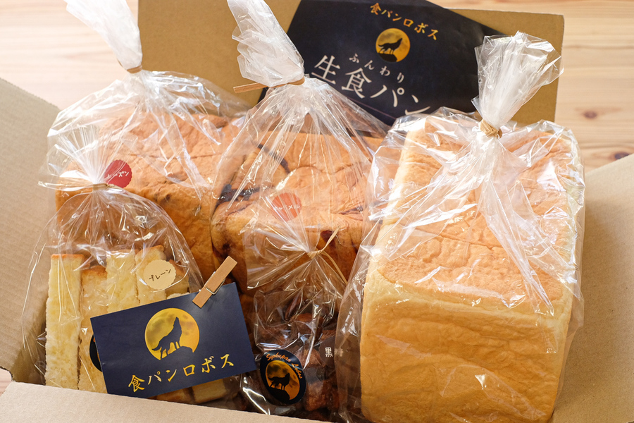 食パンが計3個、メロンパン2個、おまけのパンかラスク1個 ●プレーン食パン1.5斤サイズ1個(必ず入ります) ●フレーバー食パン1斤サイズ2個(レーズン・あんこ・キャラメル・チョコ・抹茶大納言・ベーコンチーズ・シナモン・チーズカレー・くるみ&クリームチーズから2種類) ●メロンパン2個(メロンパン、羽根付きメロンパン、チョコメロンパン、メイプルメロンパンから2種) ●おまけのパン(カルッツォーネ、くるみソフトフランス、自家製酵母山型全粒粉食パン、塩パン、ラスク等から1種)
