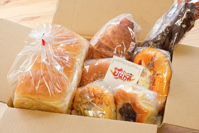 60サイズの箱に11個前後のパンを詰めてお送りします。