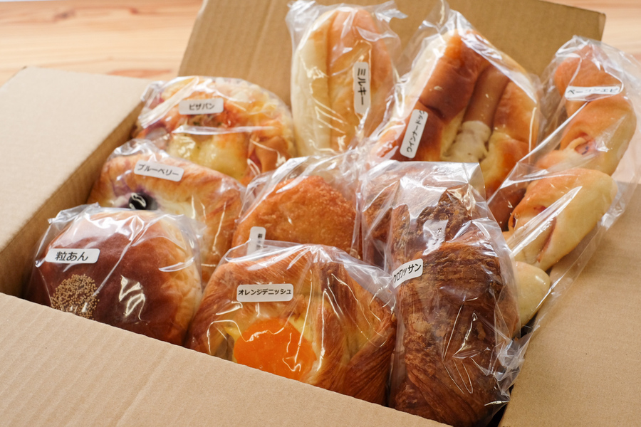 60サイズの箱に、10個~12個前後をお詰めしてお送りいたします。 ※パンの大きさによって個数は変わりますので予めご了承ください。