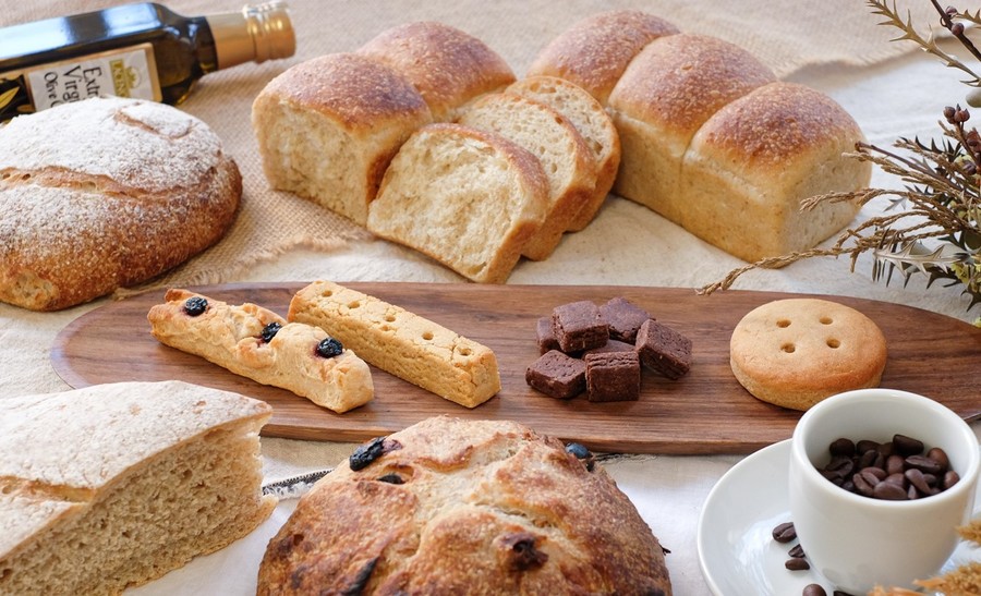 北海道産小麦粉・北海道産小麦全粒粉・大滝産有機小麦(自家製粉)・有機古代小麦・自家培養酵母・有機砂糖・宗谷の塩・圧搾法菜種油・有機オリーブオイル・有機ココナツオイル・有機ショートニング(有機パーム油由来、トランスファットフリー)・有機無調整豆乳・有機ドライフルーツ、ナッツ・有機ココア・有機ココナツ ほか ※使用する可能性のあるものを表記しております。詳しくはお問い合わせください。 ※アレルギーがご心配な方はご遠慮下さい。 ※各ぱんに原材料表示シールを貼付します。
