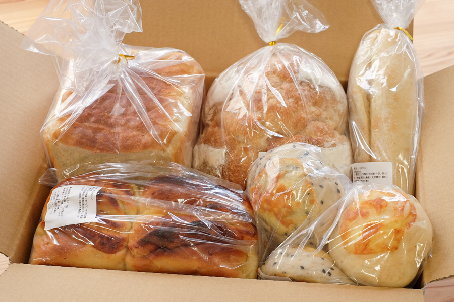 80サイズ(外寸70cm)の箱に入るだけ入れてお送りします。 ※パンの大きさにより個数は変わります。 ※スライスは枚数のリクエストにはお応えできかねますが、大きなパンはお店のおすすめの厚さにスライスさせて頂いております。
