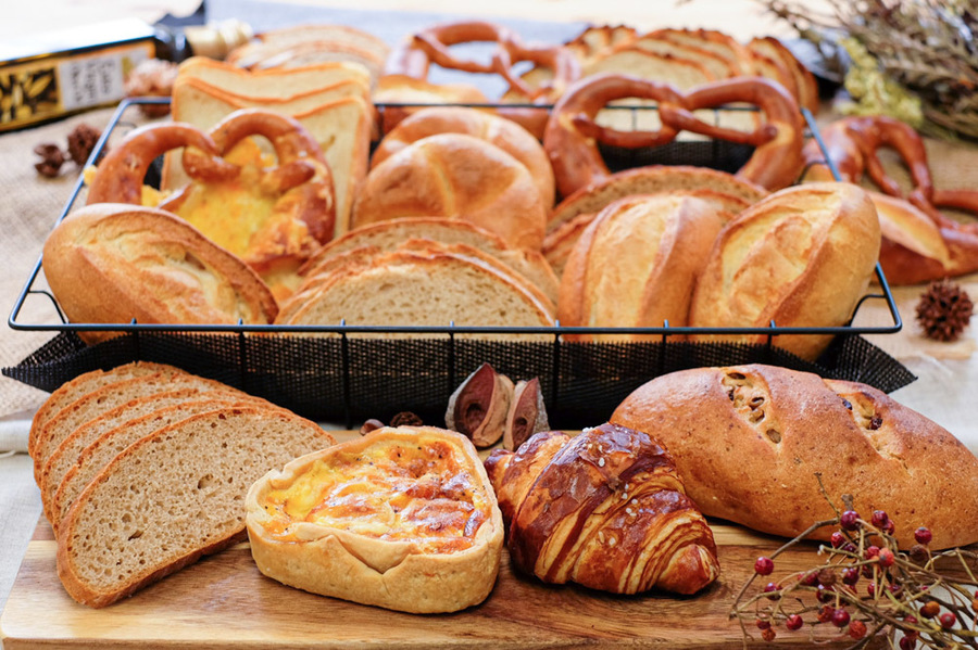 主な原材料:小麦粉、ライ麦粉、脱脂粉乳、イースト、オリーブ油、バター、イーストフード、全卵、ほか ※アレルギーがご心配な方はご遠慮下さい。 ※各パンに原材料表示シールを貼付します。
