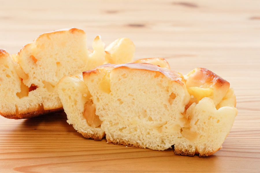 自然解凍後、あらかじめ余熱しておいたオーブンやトースターで温めてお召し上がりください。(※気温が上がってくる夏場は一晩冷蔵庫で解凍してください) パン全体に霧吹きなどで軽く水をかけてからトースターで3分~4分ほど加熱するとさっくり、もっちり出来たてのようになり美味しく召し上がれます。