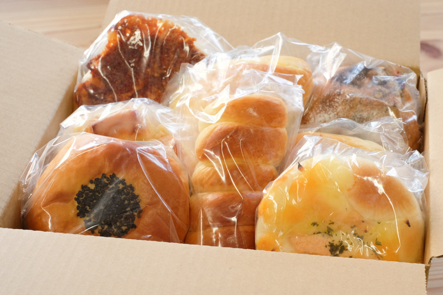 60サイズの箱に12個前後のパンを入れてお送りします。