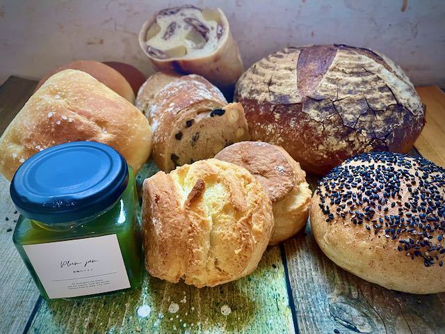 ●大きめのパン1個 ●小型のテーブルロール 4個(2~3種類を1〜2個ずつ) ●具入りのハードパンのハーフサイズ 2種(各1個) ●スコーン 2個 ●果物や野菜のジャム1個 合計10点の詰め合わせです。