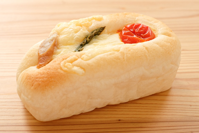 小麦粉(国産・カナダ産)、砂糖、塩、パン酵母、ショートニング、チーズ、チョコレート、トマト、アスパラ、他 ※アレルギーがご心配な方はご遠慮下さい。 ※各パンに原材料表示シールを貼付します。