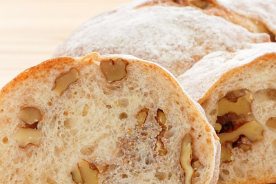 小麦粉・バター・砂糖・塩・パン酵母・くるみ・チョコレート ほか ※アレルギーがご心配な方はご遠慮下さい。 ※各パンに原材料表示シールを貼付します。