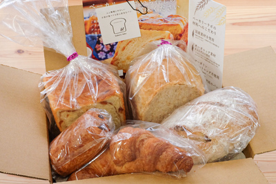 60サイズの箱に以下のパンが入ります ●デニッシュブレッド:プレーン ●デニッシュブレッド:りんごシナモン ●全粒粉食パン ●クロワッサン ●パンオショコラ ●カンパーニュ:クルミ