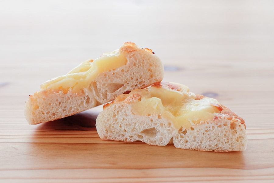 自然解凍後、あらかじめ余熱しておいたオーブンやトースターで温めてお召し上がりください。 パン全体に霧吹きなどで軽く水をかけてからトースターで3分~4分ほど加熱するとさっくり、もっちり出来たてのようになり美味しく召し上がれます。 厚みのあるパンは表面がこげやすいのでアルミホイルをかけて加熱してください。