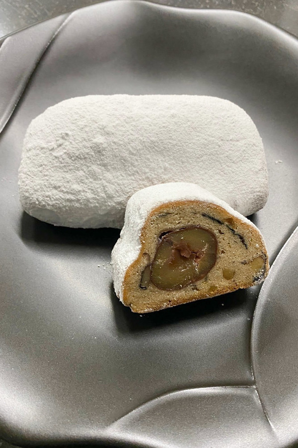 小麦粉、渋皮栗、黒豆、バター、クルミ、アーモンド、三温糖、生クリーム、卵、ラム酒、キルシュ、蜂蜜、酵母、塩、香辛料/バニラオイル アレルゲン(8品目):小麦・卵・乳成分・アーモンド・クルミ ※アレルギーがご心配な方はご遠慮下さい。