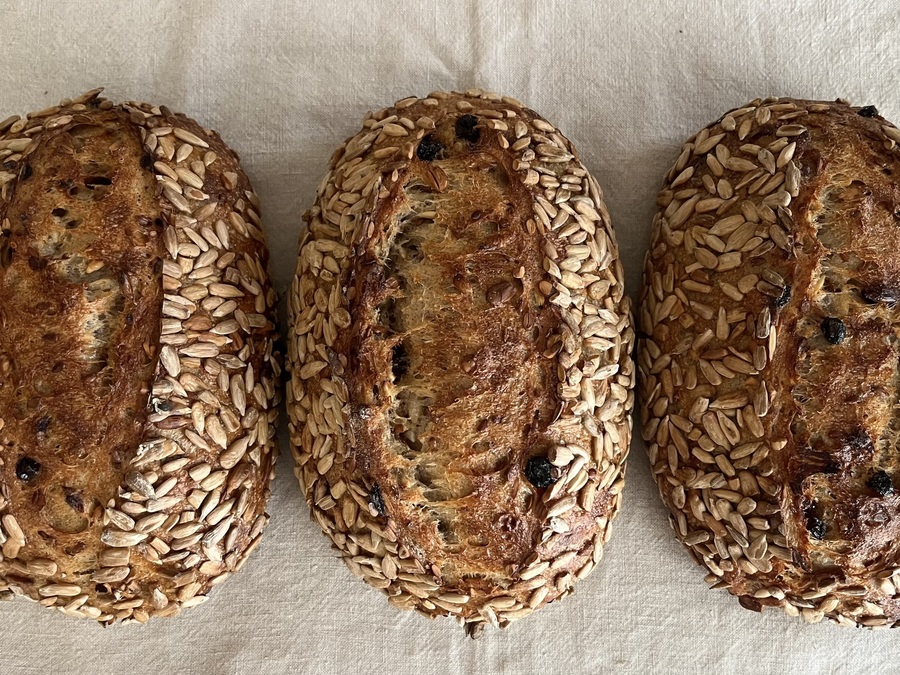 主な原材料:小麦粉、ライ麦粉、国産バター、有機ショートニング、きび砂糖、洗双糖、ゲランドの塩、自家培養ライ麦酵母、自家培養ルヴァン種、北海道産とかち野酵母、生イースト、有機ドライフルーツ、他 小麦は北海道産、ライ麦は北海道産有機ライ麦を使用。 全粒粉は十勝オーガニックファームつちの実、阿部自然農園の小麦を自家製粉しています。 アレルゲン(8品目):小麦、乳、卵、ナッツ、ごま、くるみ くるみとクランベリーのパン(商品一例):小麦粉、全粒粉、クランベリー、くるみ、牛乳、砂糖、無塩バター、スキムミルク、塩、酵母 ※各パンに原材料表示シールを貼付します。 ※アレルギーが心配な方はご遠慮下さい。