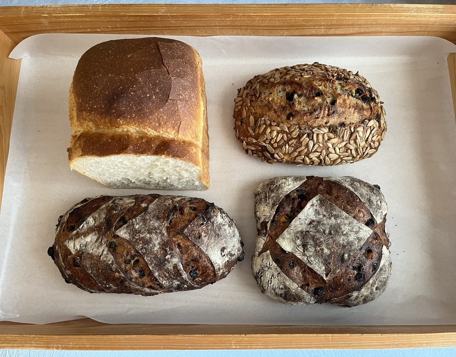 食事パン5種類(ハーフサイズなど)と菓子パン3種類ほど、その時々で少し内容が変わります。 ※苦手なもの、アレルギーなどにはご対応致しかねますので予めご了承ください。