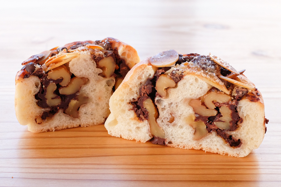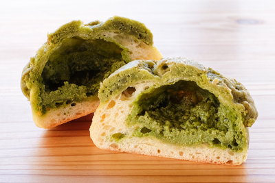小麦粉、発芽玄米酵母、バター、抹茶、ホワイトチョコ、コーン、オリーブ油、自家製ベーコン、セルロース、塩、レシチン、ほか ※アレルギーがご心配な方はご遠慮下さい。 ※各パンに原材料表示シールを貼付します。