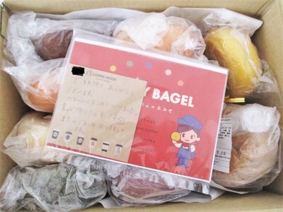 今回は実家に送りました。バラエティ豊かなベーグルに感激していました。リベイクしたらもっちりしてとても美味しかったそうです。ありがとうございました。
