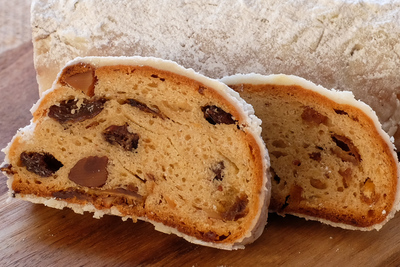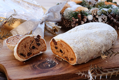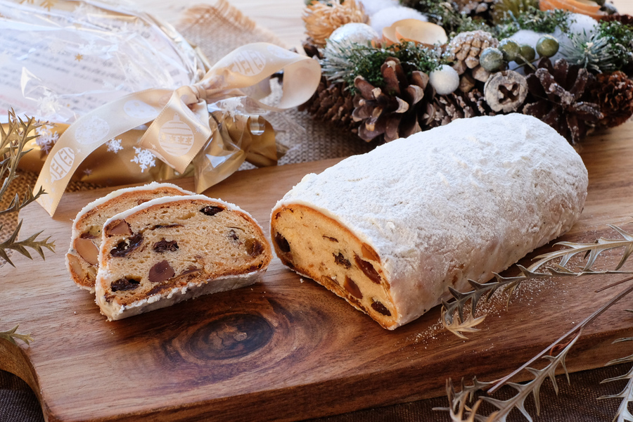 【原材料各4種類共通】 国産小麦粉・国産生乳バター・グラニュー糖・北海道産脱脂粉乳・アーモンドパウダー・塩・卵・パン酵母・浄水・粉糖・はちみつ 【プレーン・チョコ・共通】 ダークラム酒・ホワイトリカー・レーズン・アーモンド・ドライイチジク・クルミ・オレンジピール・レモンピール・バニラビーンズ・ナツメグ・シナモン・カルダモン ※本製品は小麦粉・卵・大豆・乳成分・牛肉・豚肉・鶏肉・海老・ナッツ類・くるみ・りんご・オレンジを使用している工場で生産しています。 ※アレルギーがご心配な方はご遠慮下さい。
